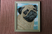 Взяла на пробу картинку на пластике. Работать было очень удобно. Думаю, подойдет для начинающих или для занятий с детьми. Выкладывается легко. Сама картинка получилась не плохой. Сделала подруге в подарок, т.к. она большая любительница мопсов.
