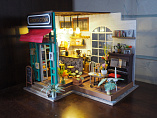 С помощью ножниц и клея вы сможете собрать удивительно детализированный интерьер одной комнаты. Каждый элемент собирается из деревянных и бумажных составляющих. Изюминкой румбоксов является проводка электричества для миниатюрных светильников, работающих от батарейки.